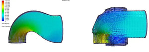 The air velocity only increases at the base of the turbo inlet on the oem design whereas the Infinity turbo inlet has a progressively increasing air velocity along it's path which will aid both throttle response and maximum air available.