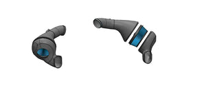 Finally, the system is fitted with our front air feed extensions which are very different to the usual open style scoops. This ensures the air is fully forced into the front air duct and not wasted by escaping where openings would exist and cause turbulence.