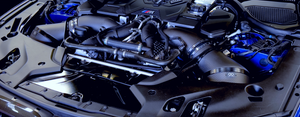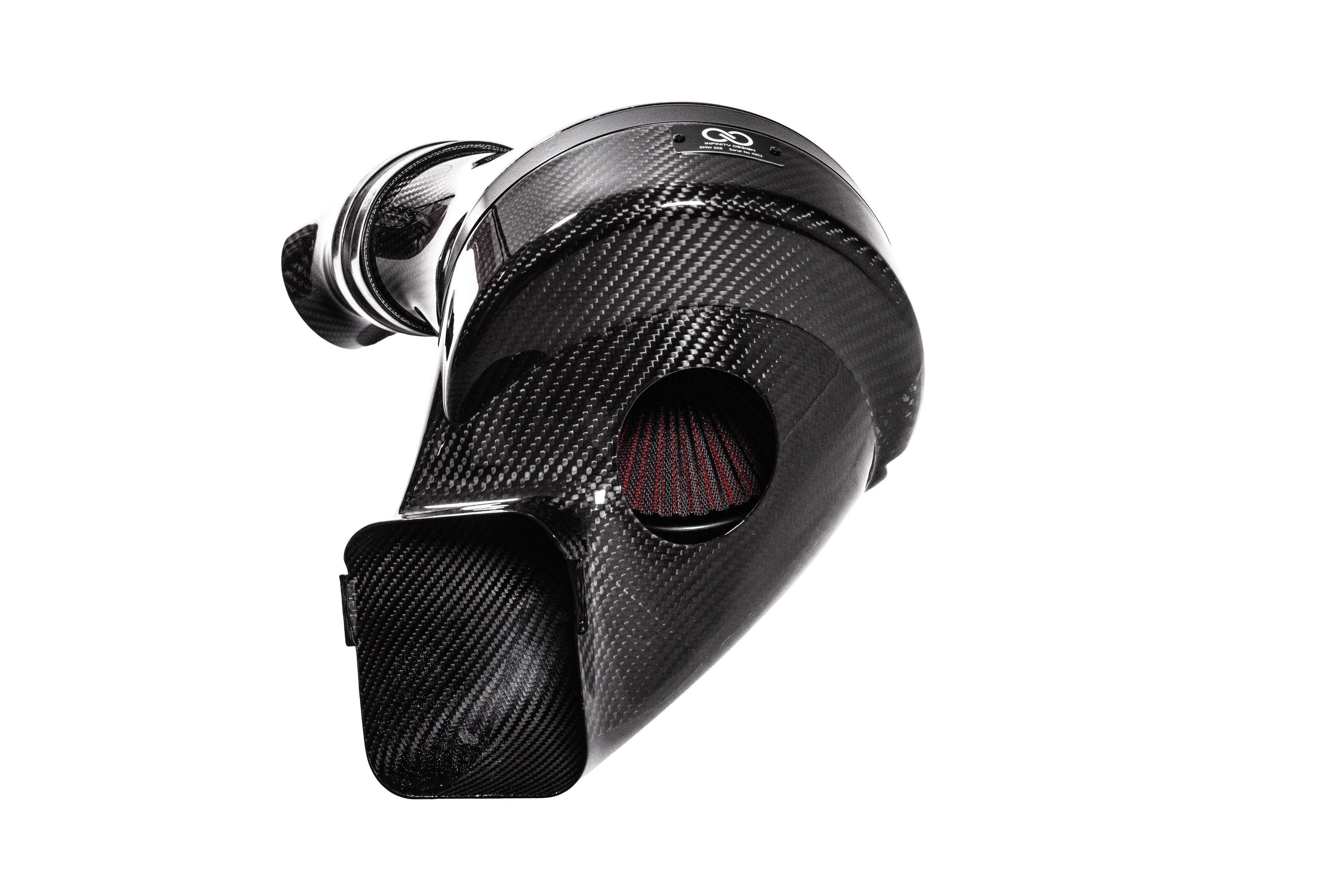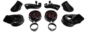 The turbo inlets are vastly larger in size over the OEM and feature an internal velocity stack which further smoothens and accelerates the air into the turbo housing. The expanding large volume inlet tubes act like a large velocity stack which accelerates the airflow and is much larger than the small and short velocity stack fitted to the internals of the oem intake.  The result is a far smoother lower rpm torque availability from the engine vastly improving drivability.  Throttle response is immediately felt to be smoother and more eager.