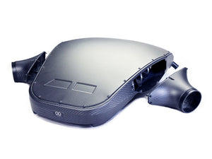 The 100% pre preg carbon fibre plenum was designed in CAD software using accurate 3D scans of the engine and engine bay without the OEM plenum in place, 3D scans of both of the individual OEM plenums and then combined together to make a singular larger volume plenum.