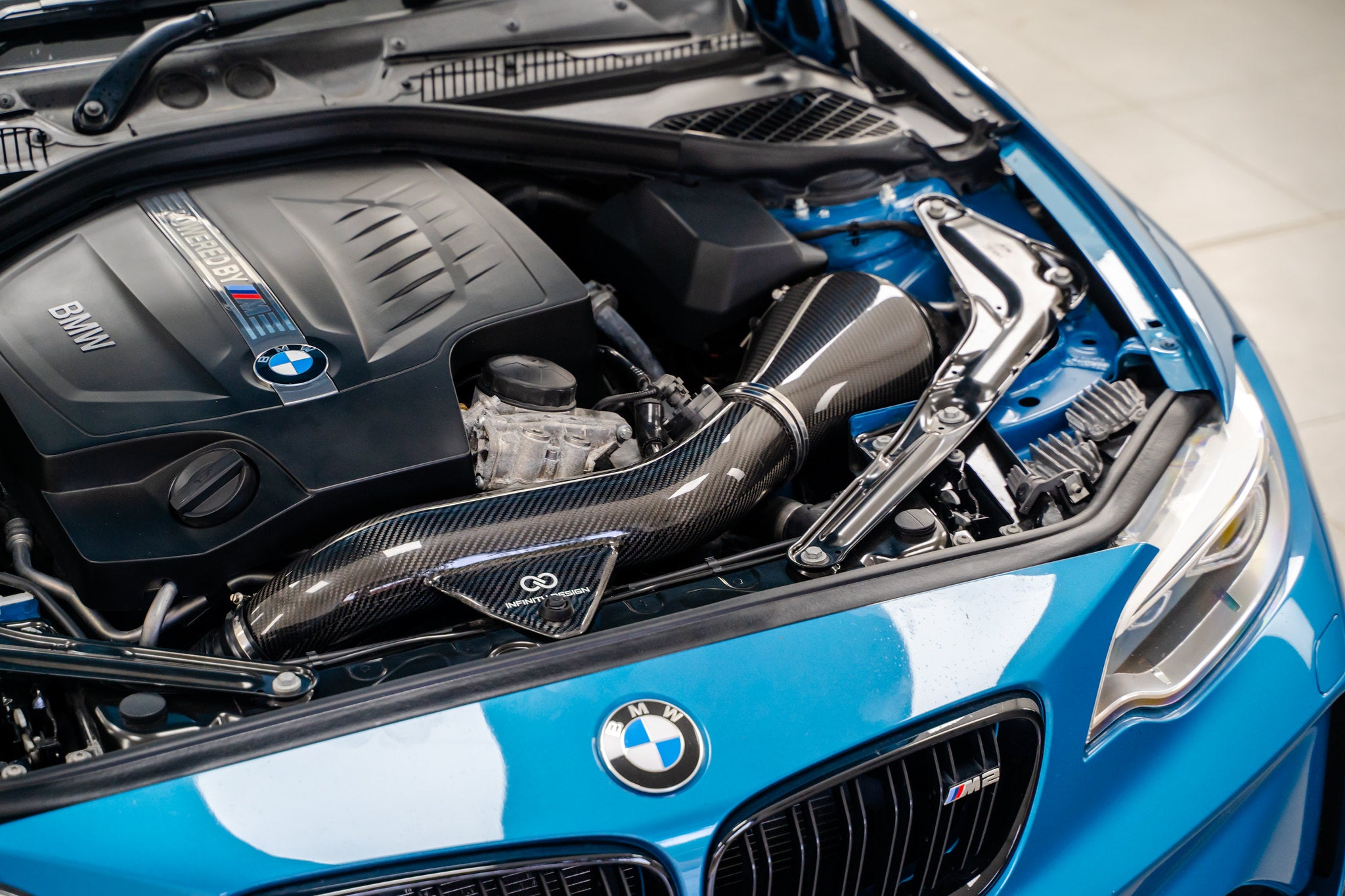 The factory intake system of the BMW M2 N55 system is not a sealed design. The front opening attaches directly the front inlet which is in turn attached to the front air ducts located behind the grills and there is a second opening which opens into the engine bay towards the headlight. This clearly suggests that one opening is not enough and the engineers had to create a separate opening to meet the high airflow demands of the engine which is understandable since the front intake has barely the same cross sectional area as the MAF. The design is still however efficient as far as keeping the intake air temperatures low. As far as being an ultimate performance intake, it is most certainly not with it's angular design, small volume and having an airflow with a directional path which is not direct.