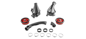 The system matches the factory intake system for inlet temperatures. In addition the system changes the air flow characteristics for a smoother delivery and allows more air to enter the turbos more easily. This fully developed and intelligently designed intake system is not just something that looks good in the engine bay but does an impeccible job as an air smoothing device, increasing air available, increasing air speed into the turbo's, allowing the turbo's to spool faster, filters for longer more efficiently, keeps intake air temperatures low and making a sophisticated race car like intake noise under load. Most important of all, it is the way the engine becomes more alive, responsive and enjoyable to use not just under full load but also normal every day driving.