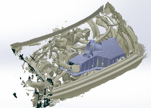 The process started with 3D scanning the engine bay and creating a model which we then 3D printed in carbon nylon giving us a real world useable prototype