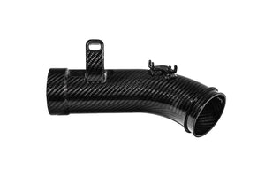 The Pre Preg Carbon Fibre turbo inlet has a shallower angle on the bend aiding airflow