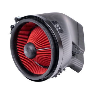 Our bespoke short stack high surface area filter larger than any cone filter design currently on offer on the market with a huge opening of 170mm (6 3/4") and is designed to take full advantage of the intake tubes by altering the direction of the airflow towards the outer walls. By placing the air filters in front of the inlet tube we achieve the largest velocity stack.