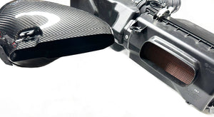 During the development process we created multiple prototypes. The initial prototype used a straight venturi tube feeding into a large airbox which took it’s air from the stock OEM area with an enlarged area with an additional air feed on the opposite side which is very small.The idea was that the additional air feed would help in increasing available airflow. However this design failed to give the desired results both on the dyno testing and on the road with no difference in power. Drivability was compromised with an additional torque dip in the higher midrange. CFD analysis showed vast amounts of turbulence in front of the air filter.